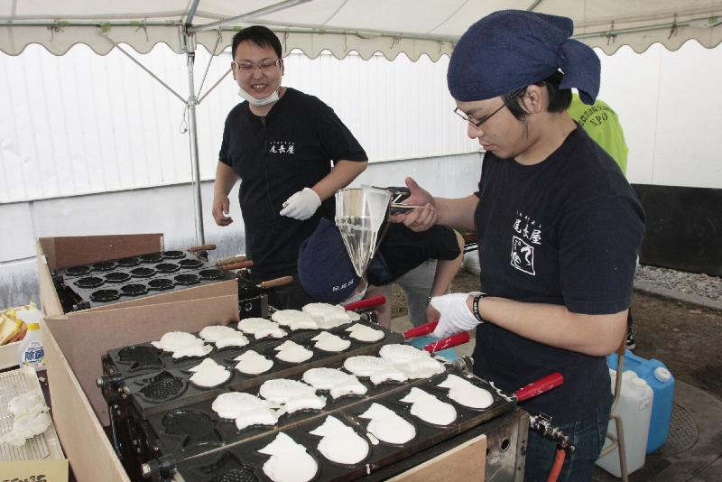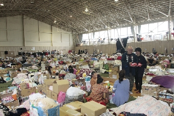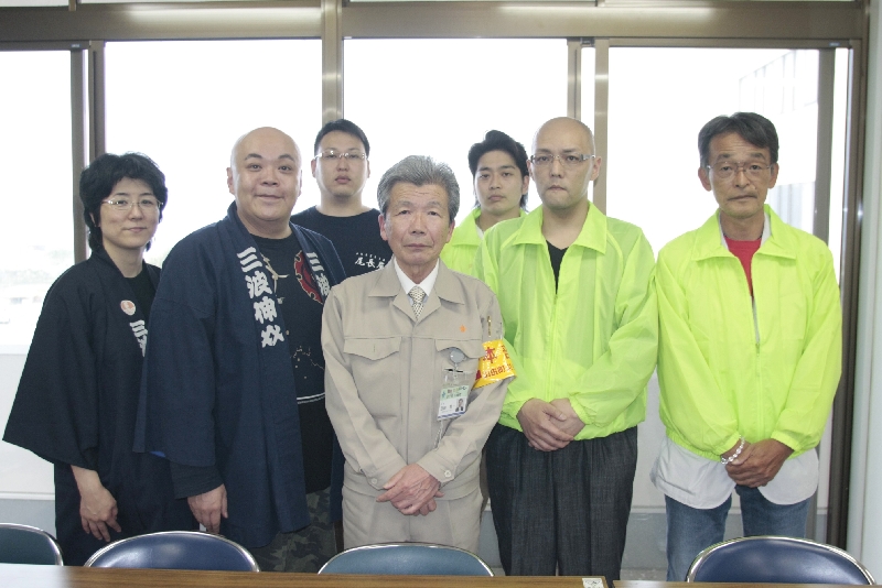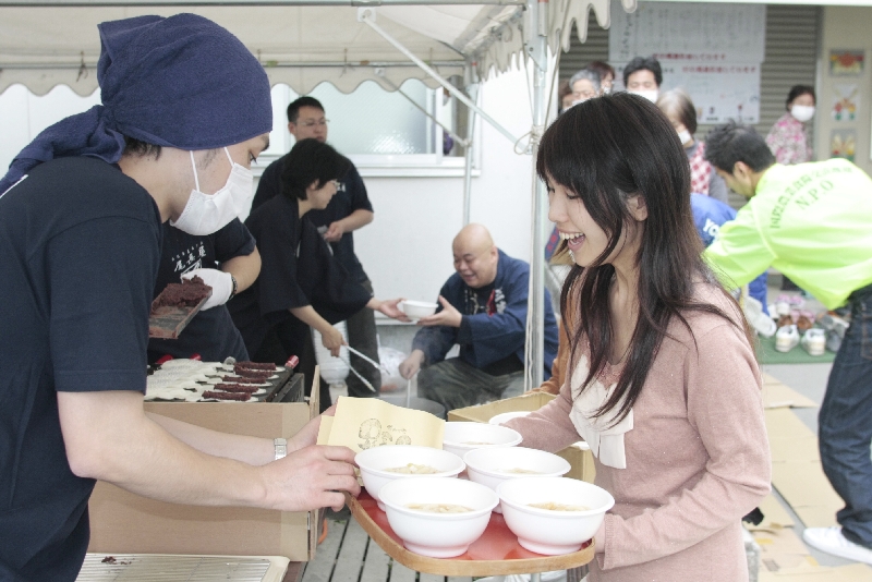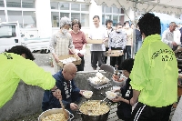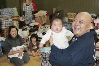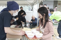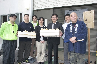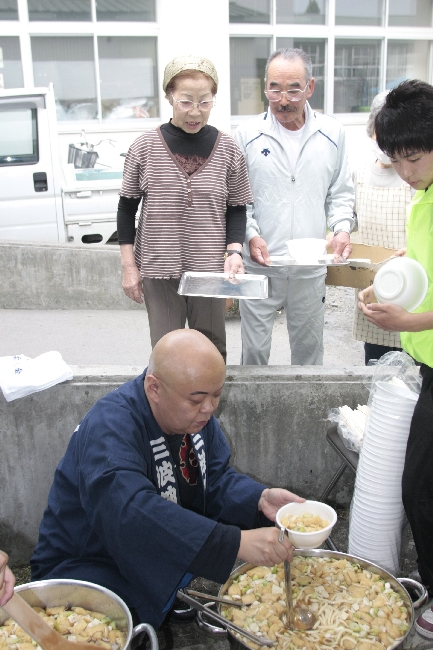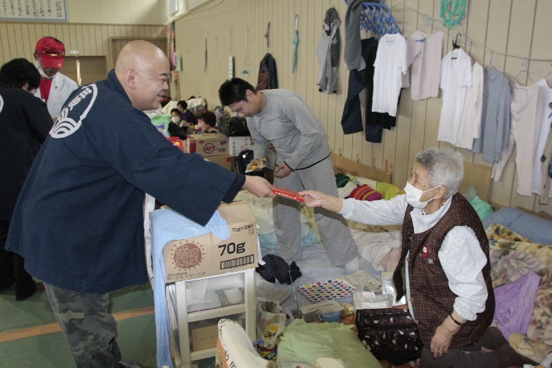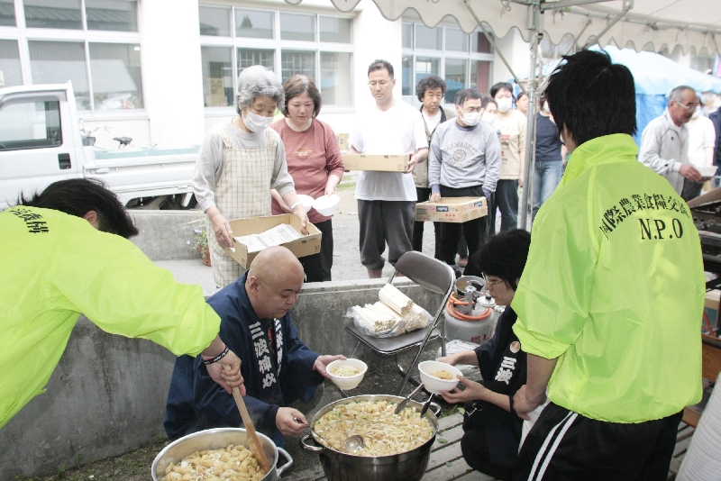 避難所:山田高校 職員と尾長屋、国際農業 みなさん